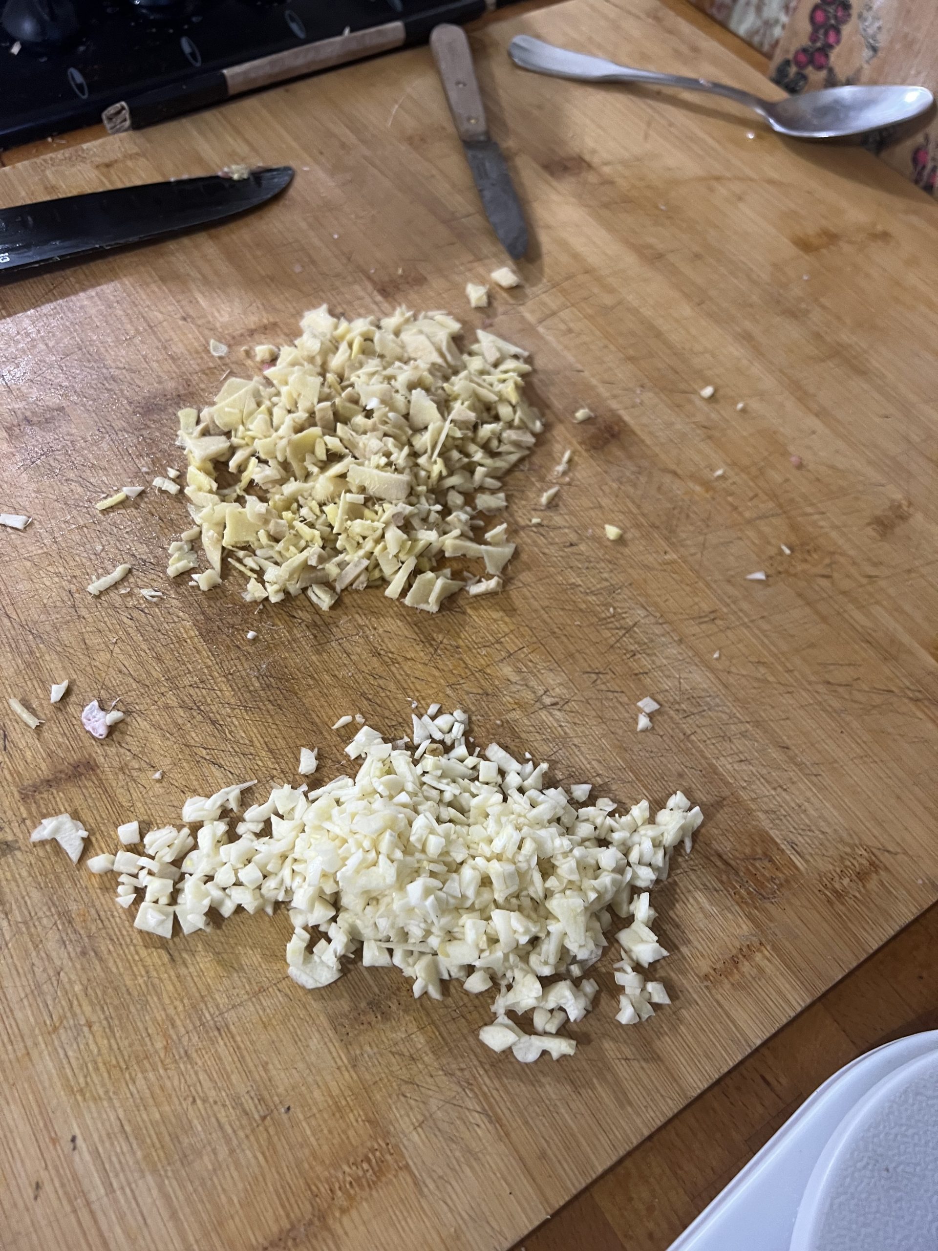 la veille coupez en dés le porc, émincez l'ail et le gingembre. Mettez le tout dans un saladier avec l'huile d'olive, l'huile de sésame, le sucre, l'eau, la sauce salée et sucrée.Mélangez bien l'ensemble et réservez dans un saladier fermé jusqu'au lendemain.
