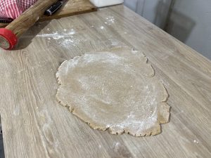 étalez la pâte en farinant généreusement le plan de travail, dans mon cas j'ai des anneaux pour avoir une pâte de 7mm d'épaisseur qui correspond à la hauteur de mes emportes pièces