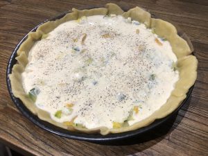 • posez la pâte dans le moule, ajoutez la préparation de légumes refroidie